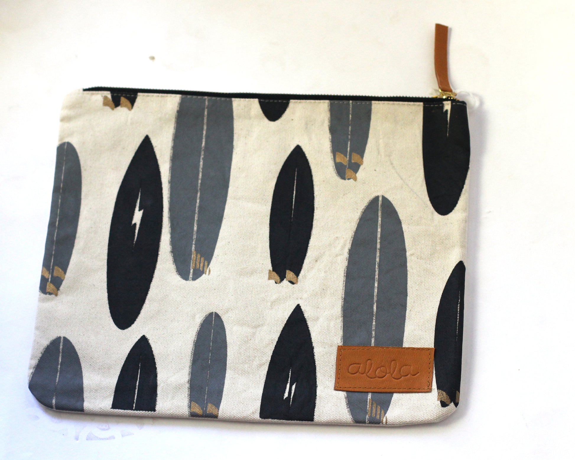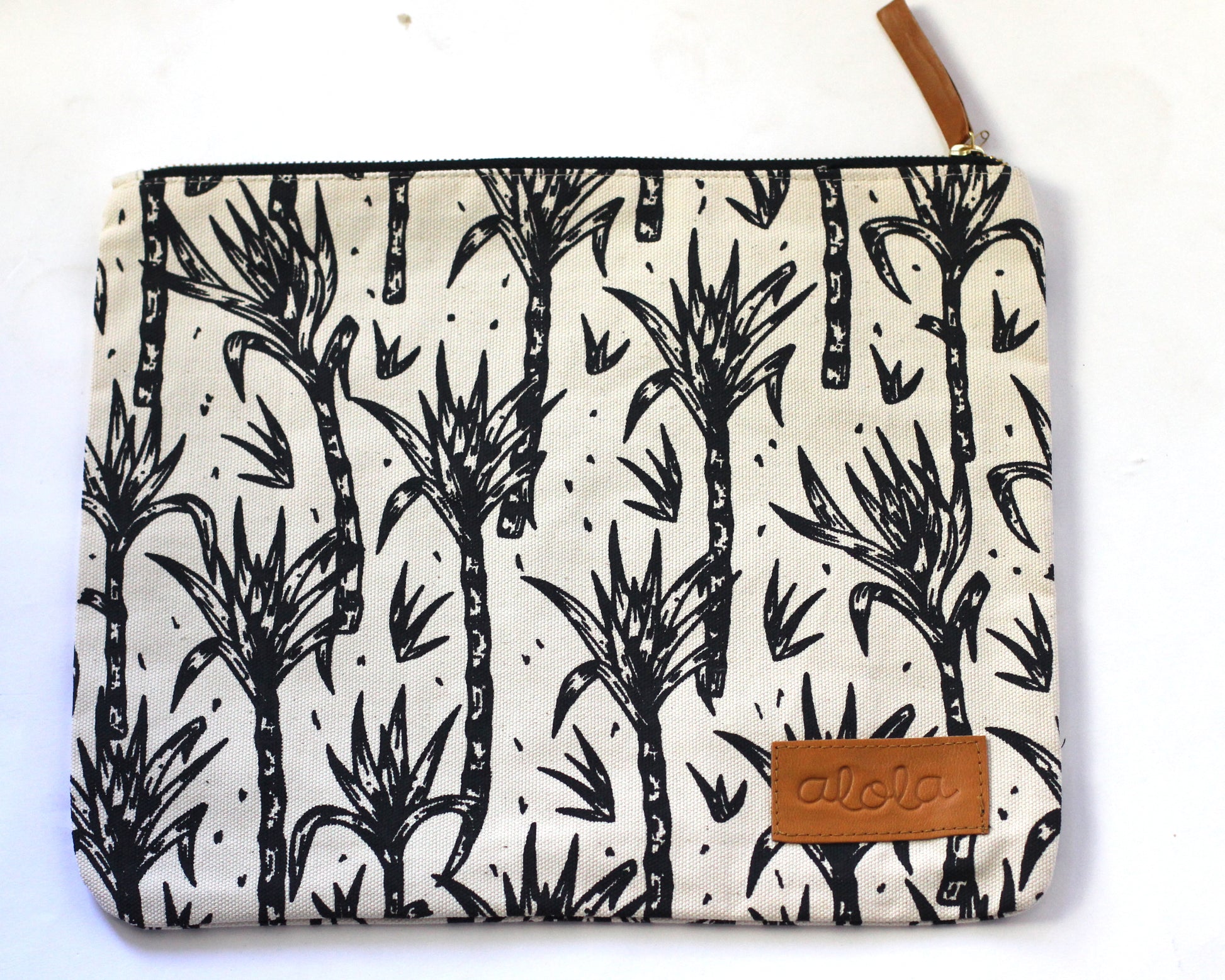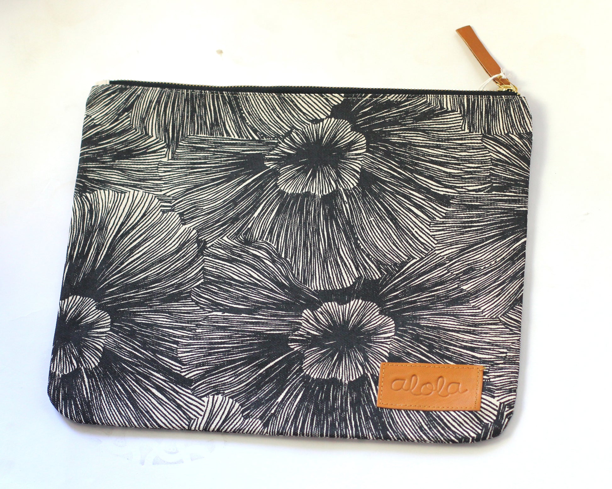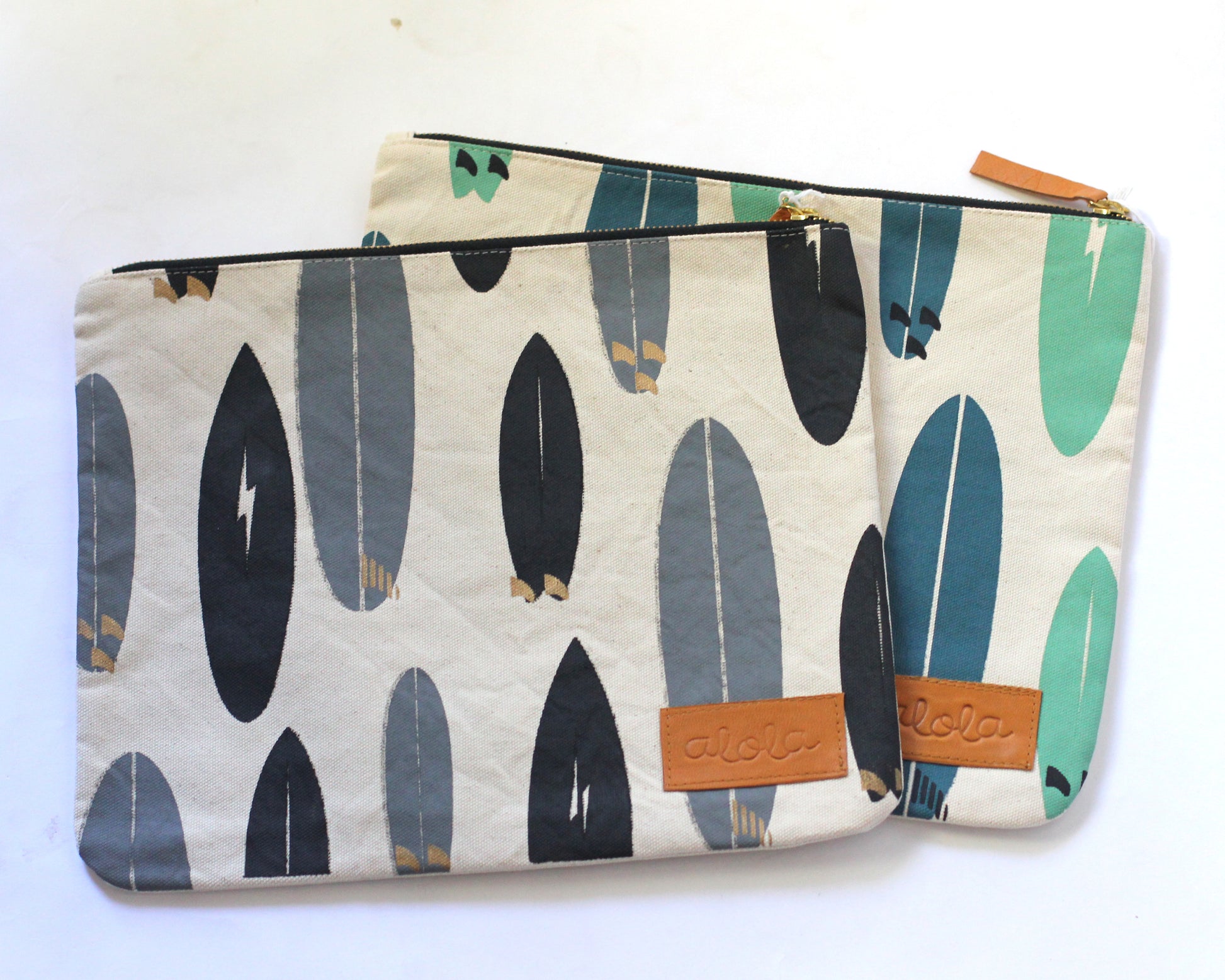 The original Alola Maui canvas clutch is refreshed in original prints! Gold zipper, interior pocket, and leather pull tabs make this Hale Zen exclusive your go-to carry-all.