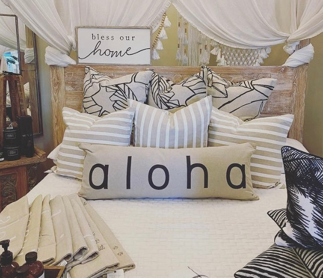 Maka Sea x Alola Maui Linen Lumbar Pillow | Aloha and Banana Leaves (Two-sided)