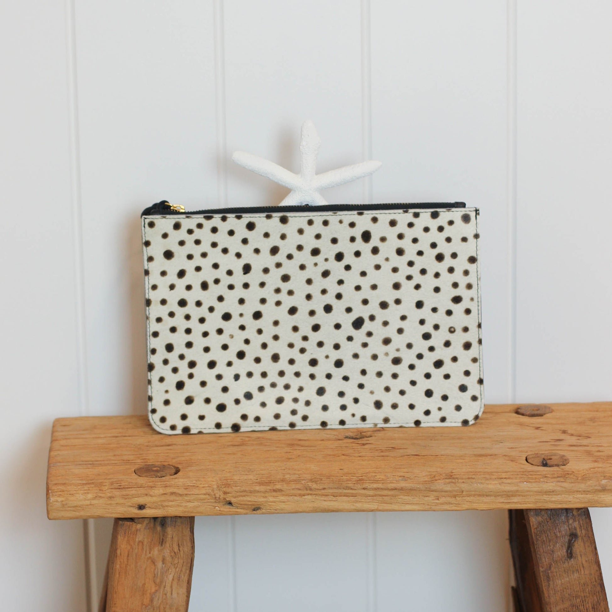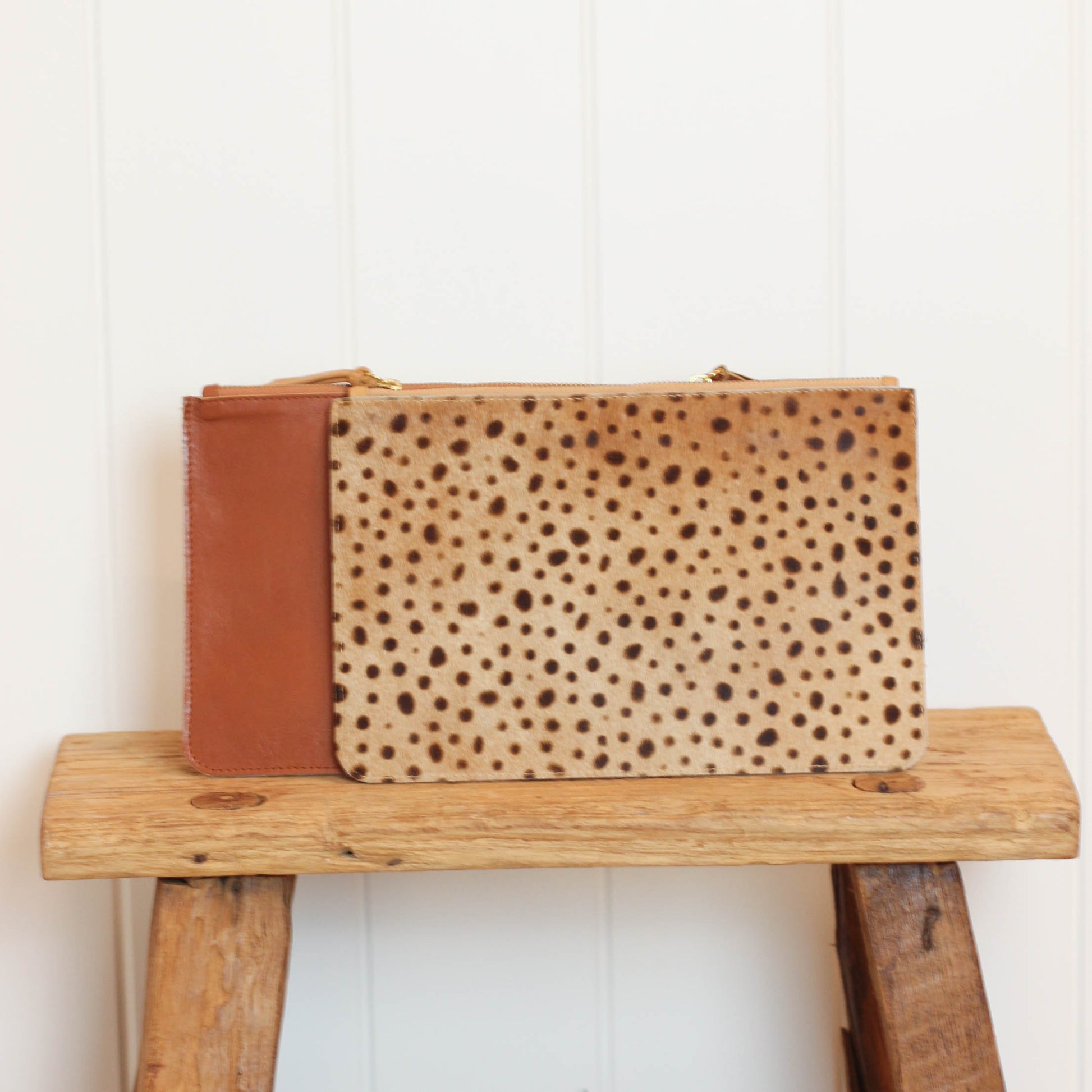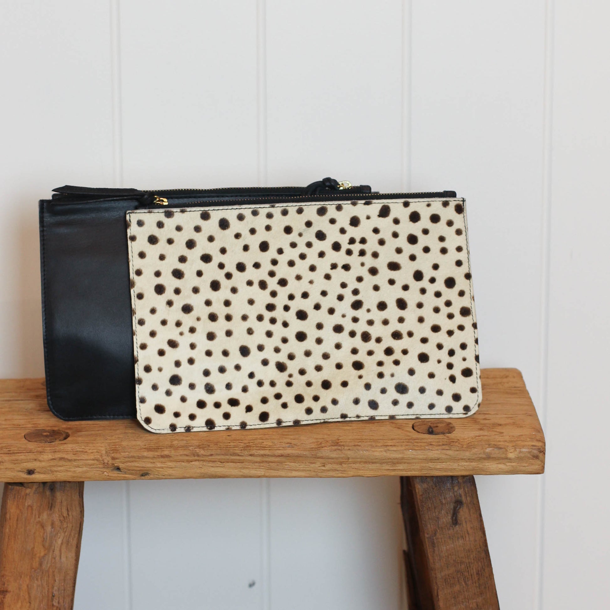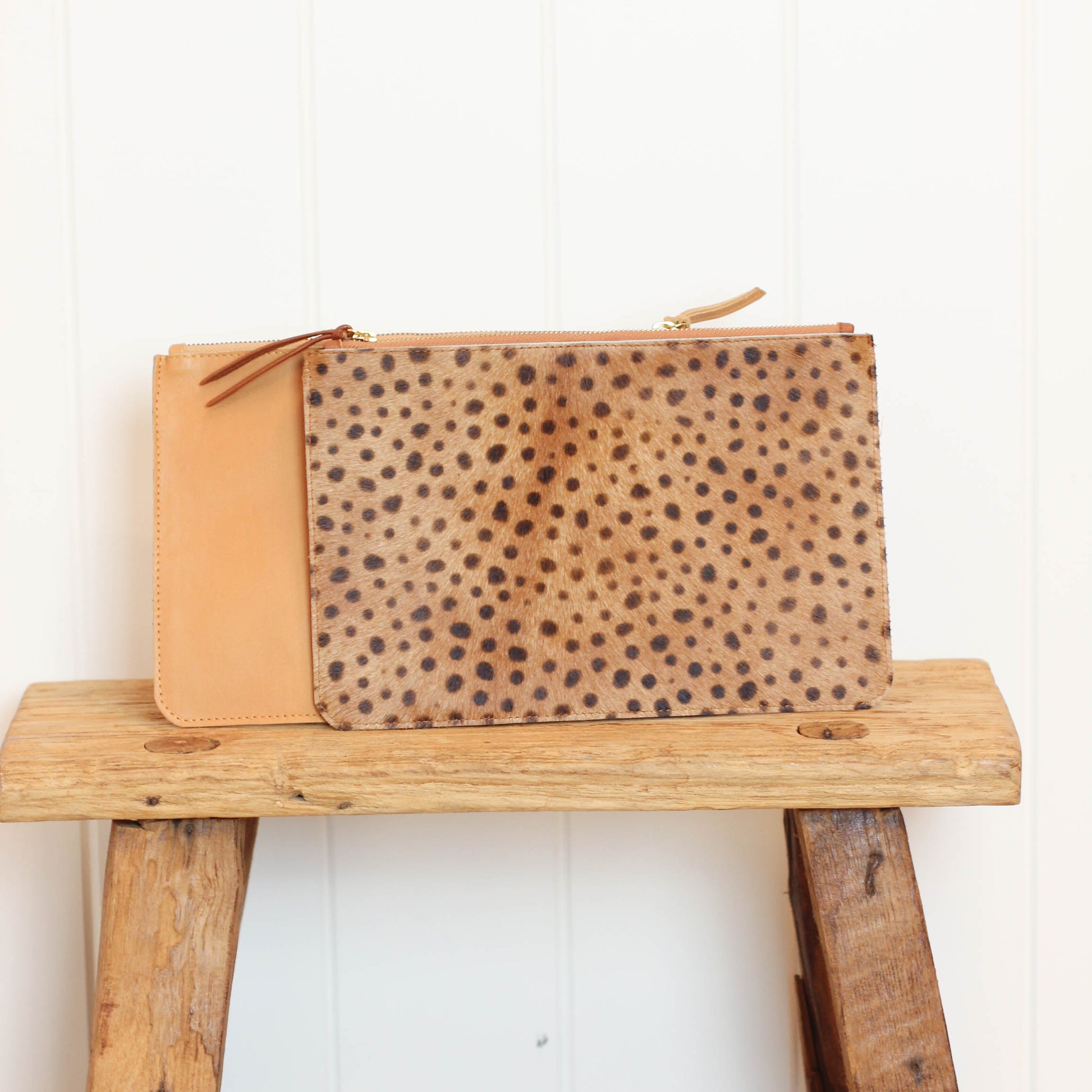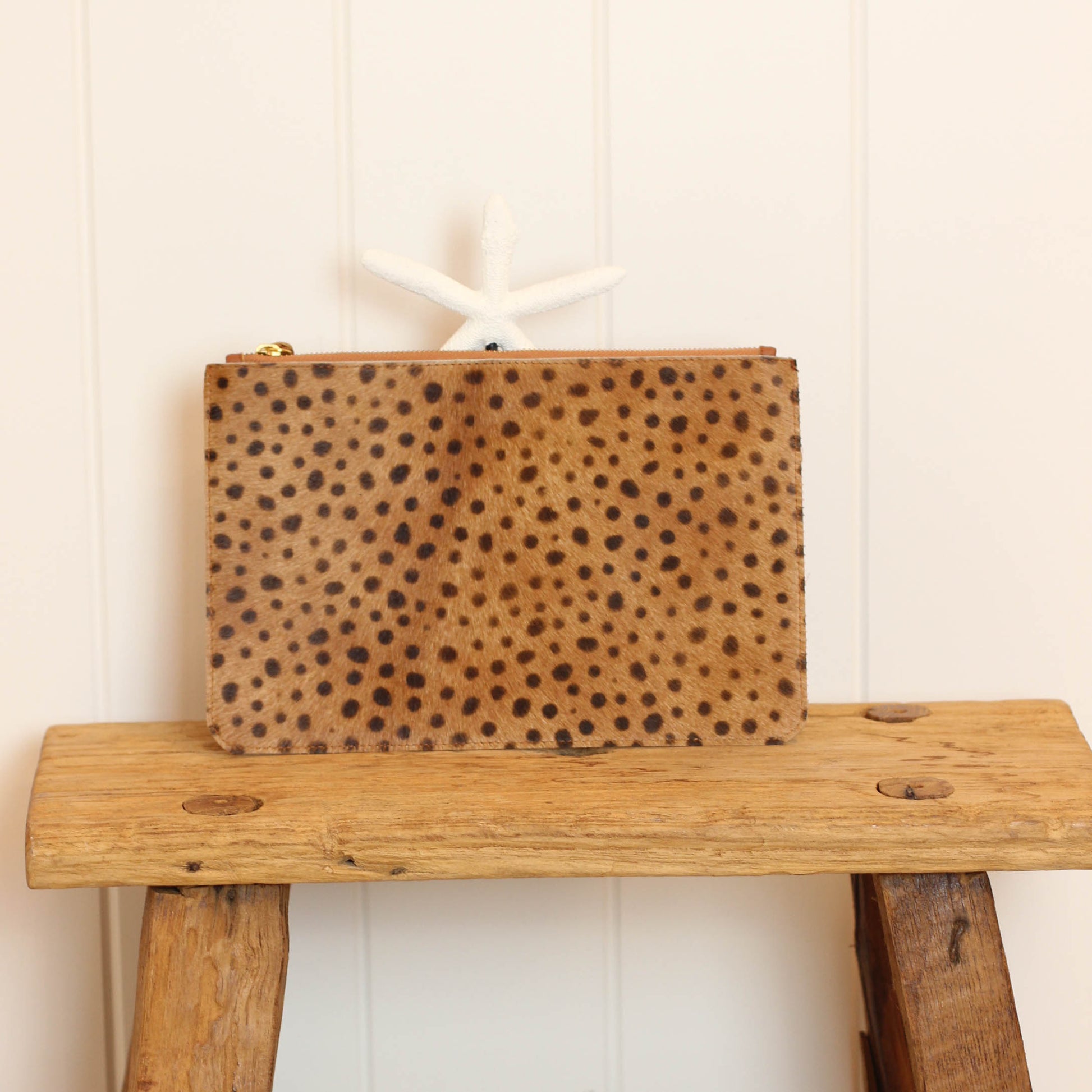Bu Tiki clutch | Leather Zippered Clutch | Spotted Animal Print