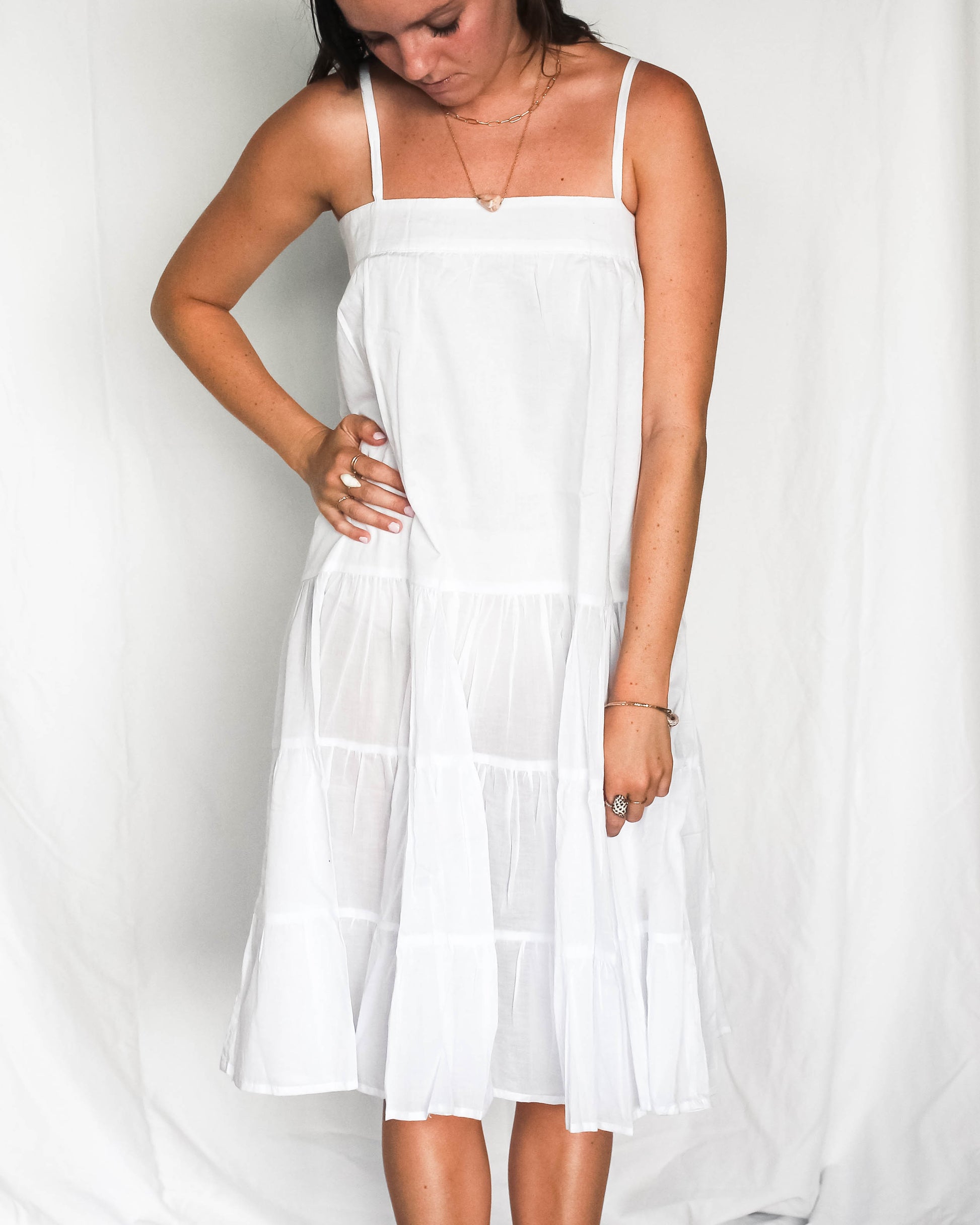 Made from 100 percent cotton, this flirty dress features a fashionable square neckline and bouncy tiers. Your new summer staple that effortlessly takes you from day to night.