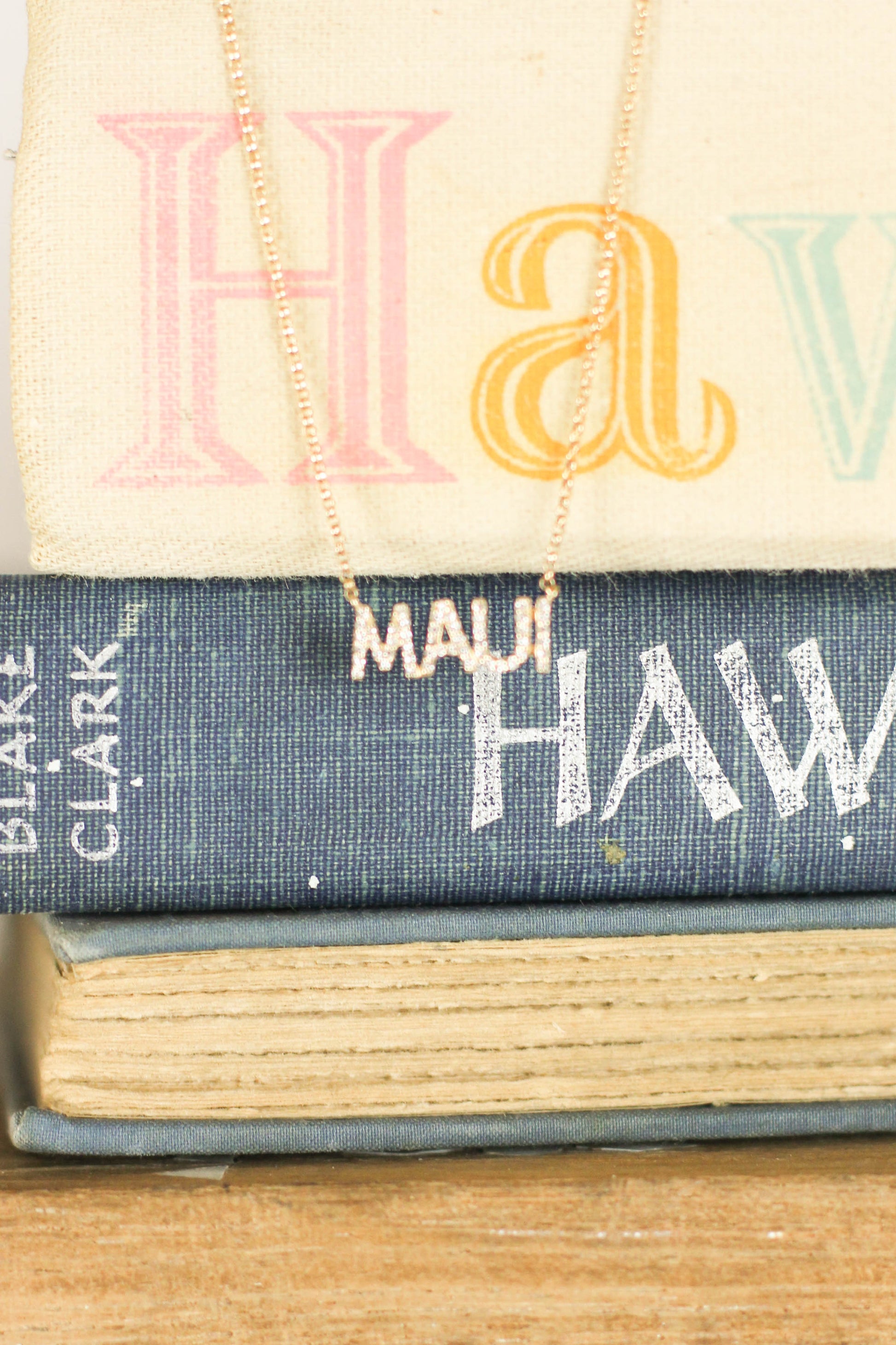 Two ways to show your love for the Valley Isle! The dainty 14K gold "MAUI" alight in pavé diamonds are destined to be everyday favorites. Wear it alone and layer with your other favorite pieces!