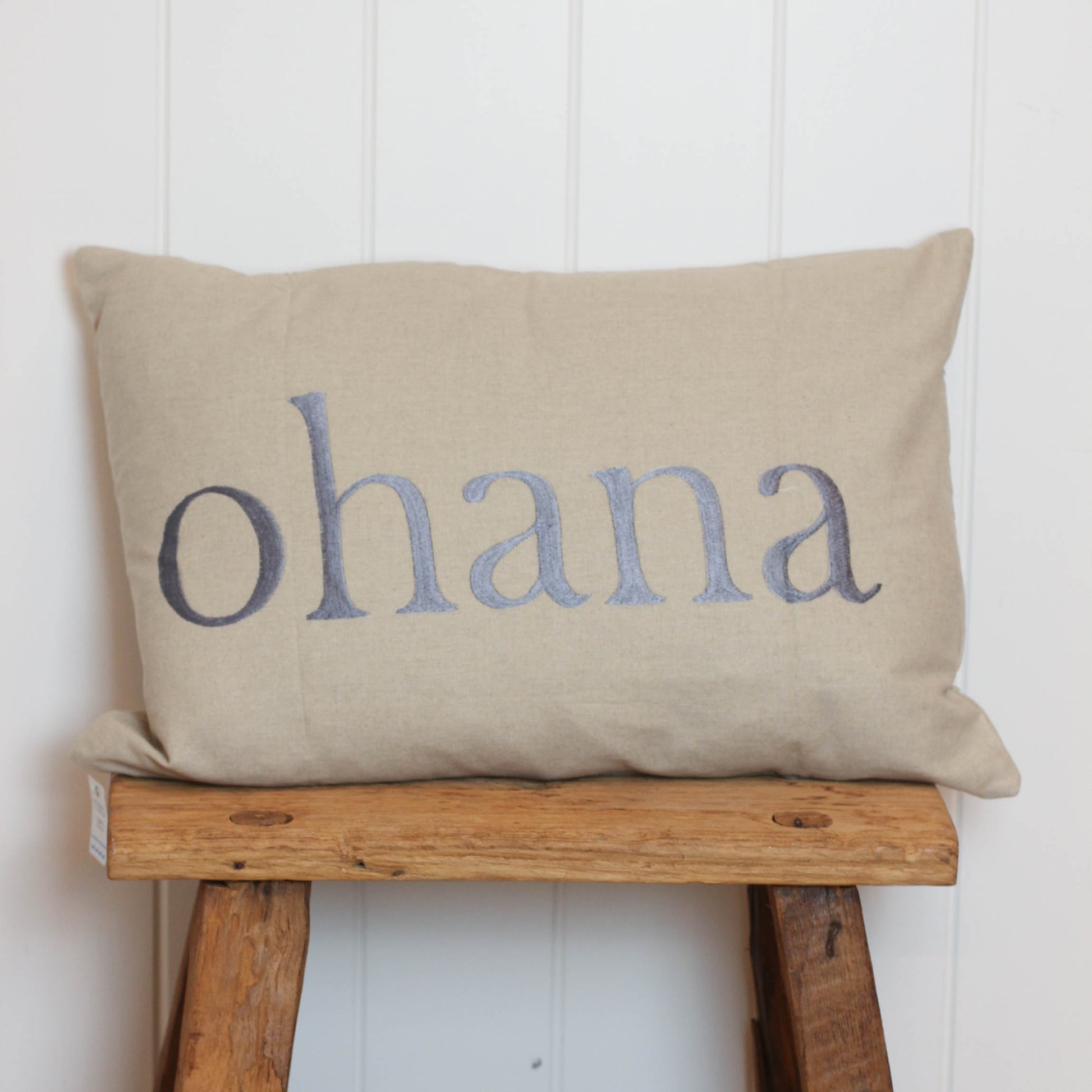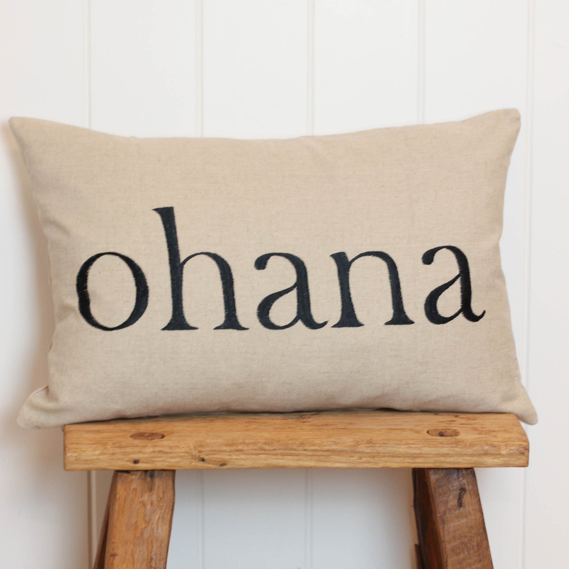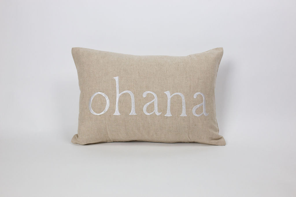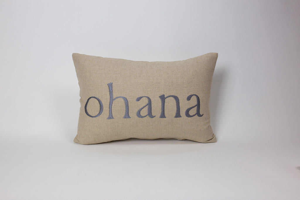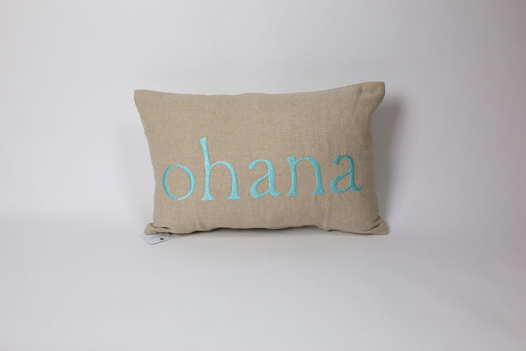 Add a little Hawaiian vocabulary to your routine with Maka Sea's high-quality linen pillow. Embroidered with "'ohana" and the English translation on the reverse.