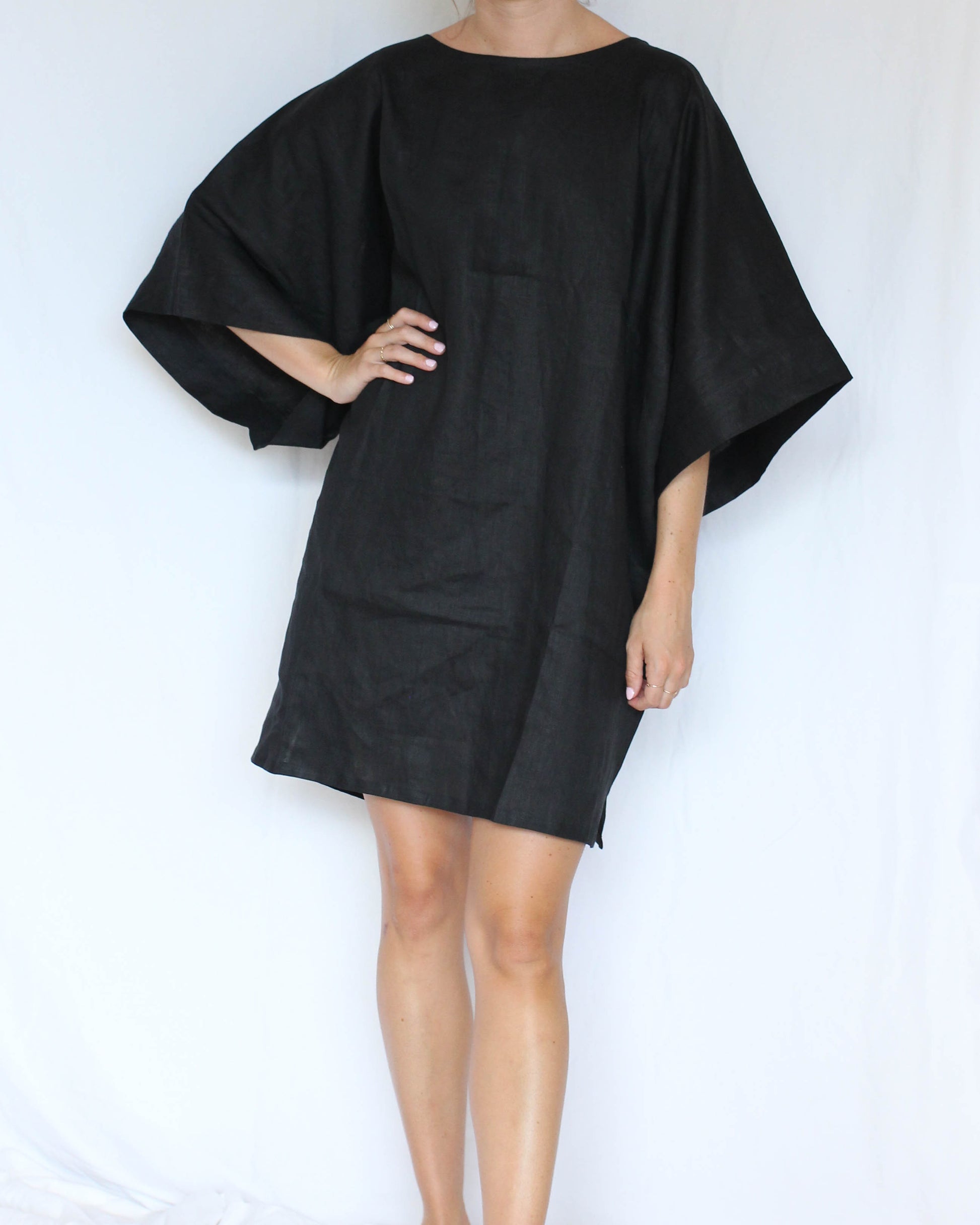 Embrace the loose fit of the bu tiki’s Emmanuella linen kaftan for a comfortable and effortless style. By playing with accessories, footwear, and additional layers, you can easily transition your linen short kaftan dress from a chic beachwear piece to a versatile outfit suitable for various casual or semi-formal settings.