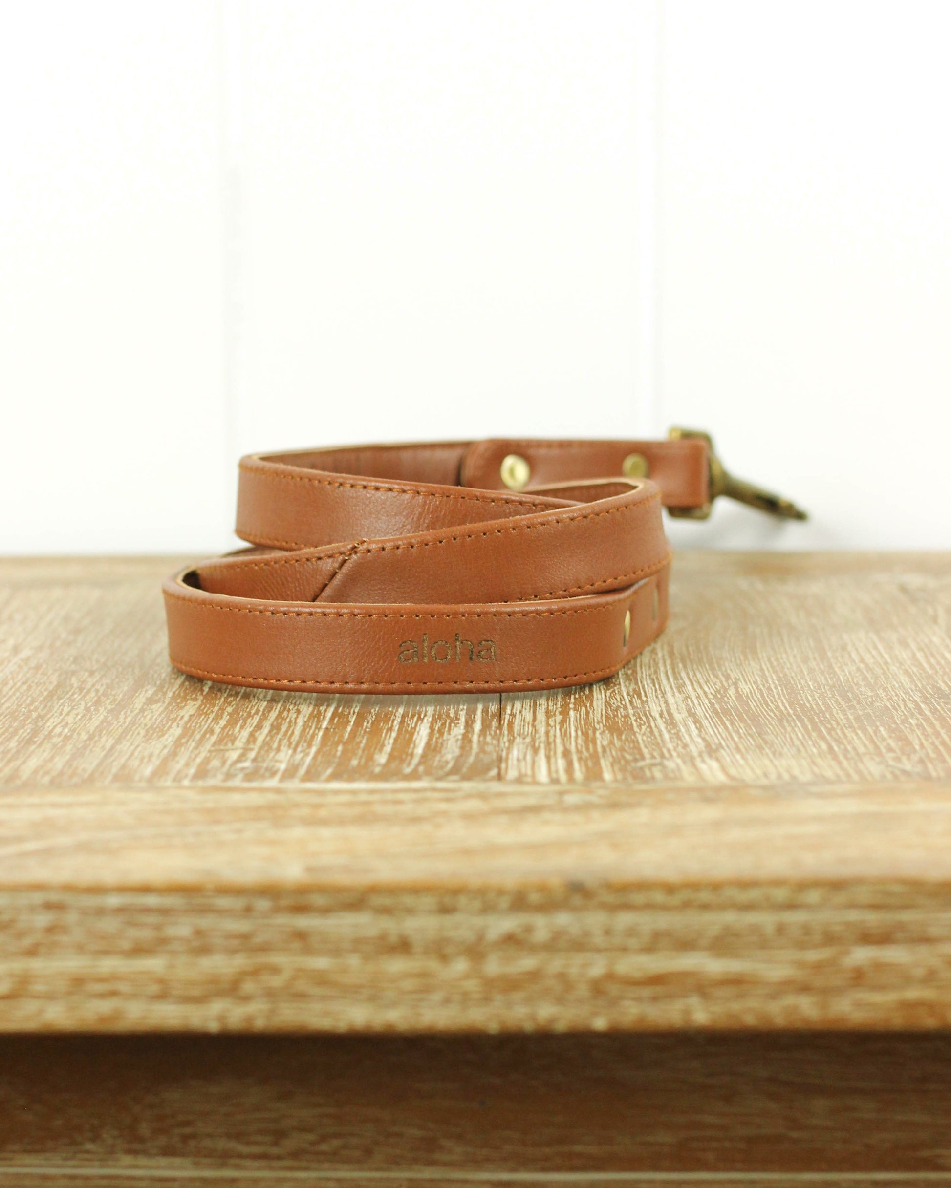 - Personalized with the word "Aloha" elegantly embossed on the leather, adding a unique and stylish touch.