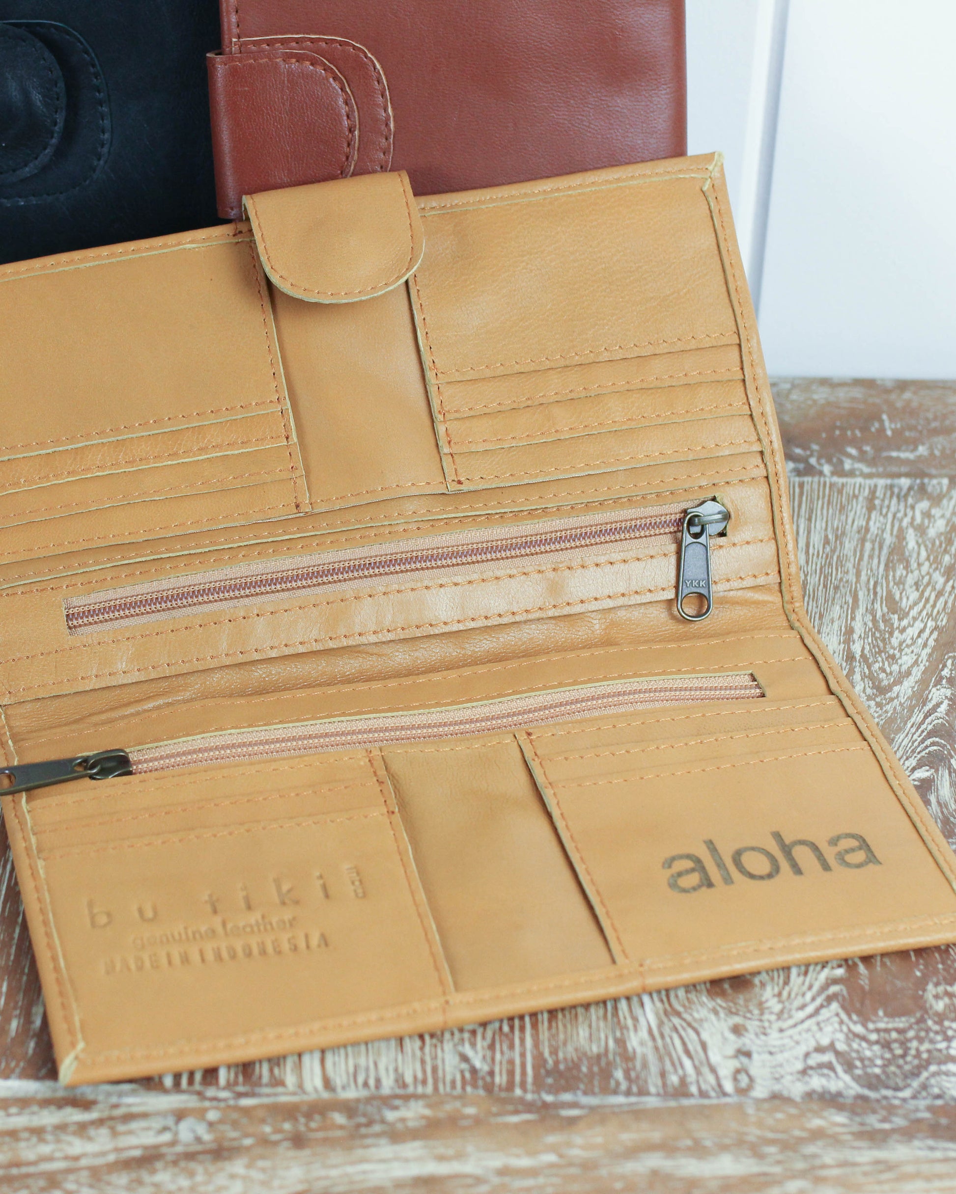 Indulge in luxury with Bu Tiki's Kala Wallet. Crafted from the finest leather from Bali, this foldover wallet exudes elegance and sophistication while keeping your cards and cash secure.
