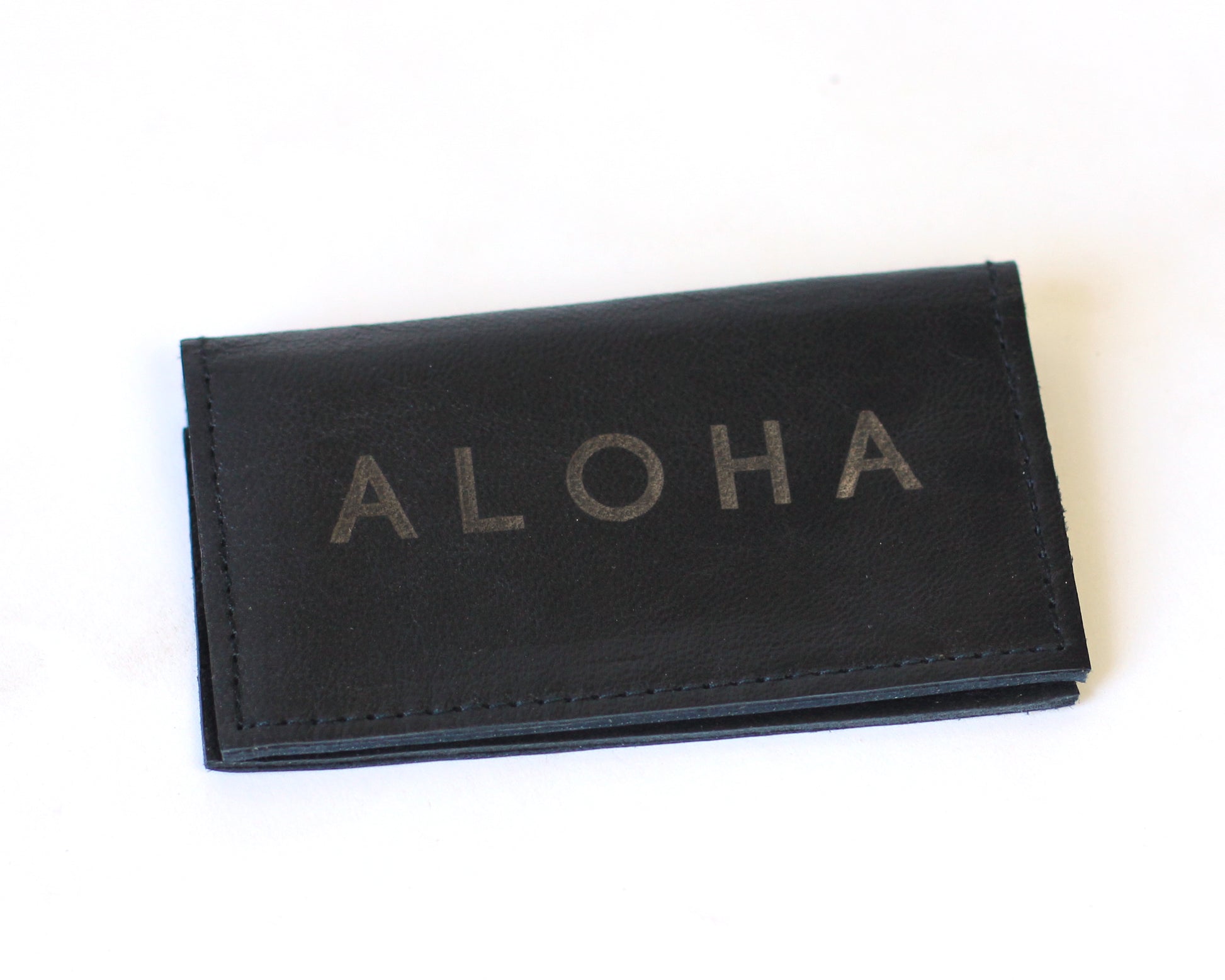 Leather Business Card Holder | ALOHA embossed | Assorted colors