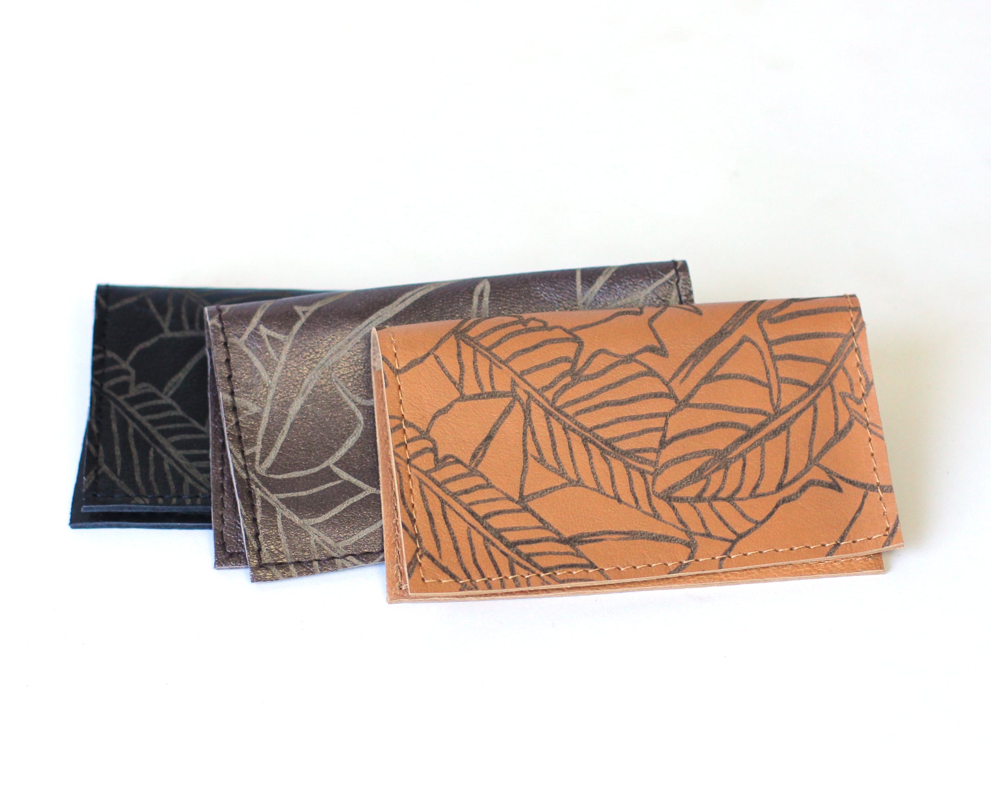 Alola Maui Leather Business Card Holder | Banana leaf embossed | Assorted colors