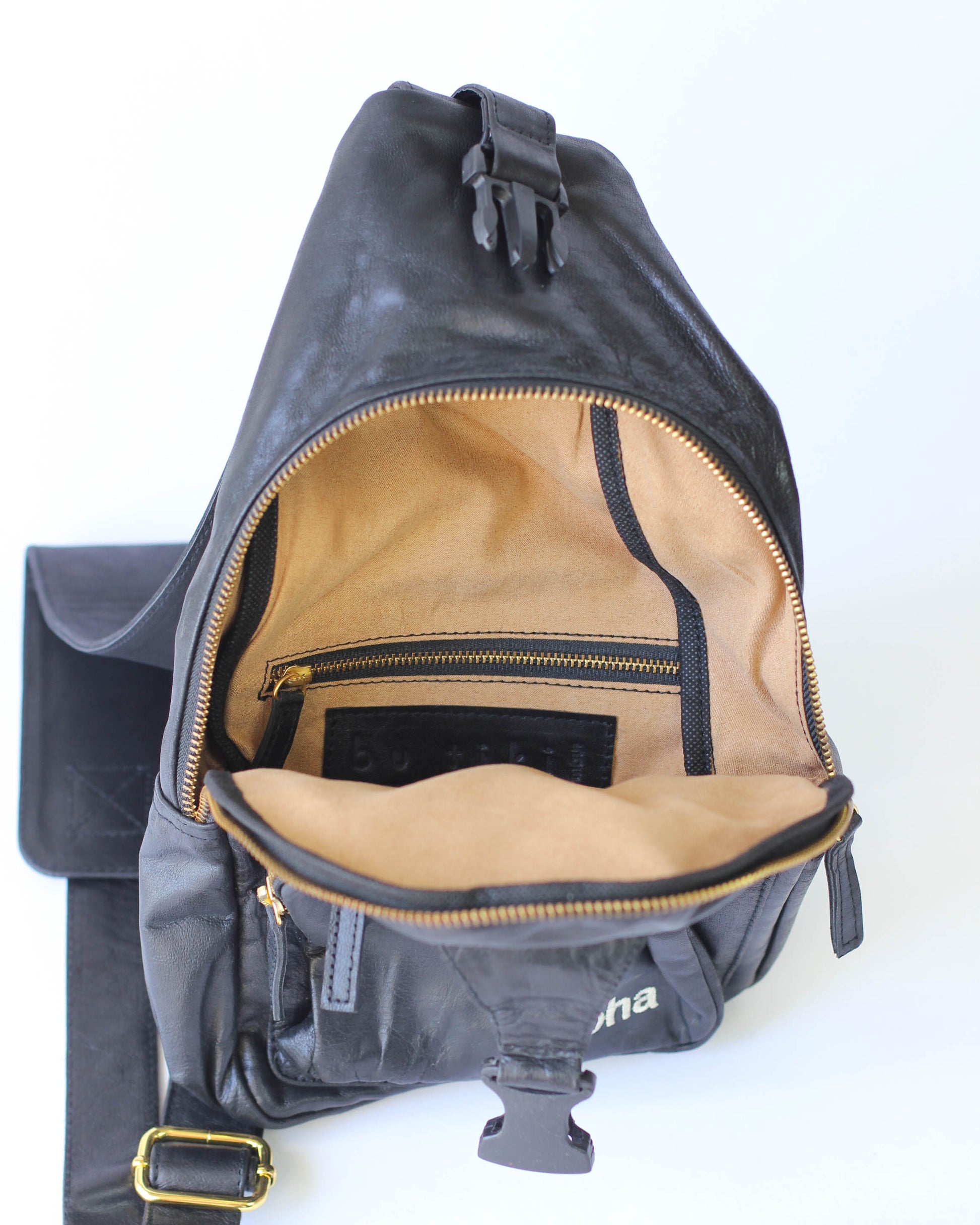 Mahina (Hawaiian for moon) is Bu Tiki’s spin on the tiny-but-mighty crossbody backpack! Multiple zippered pockets for handy and accessible storage plus a “jacket gripper” with plastic clip.