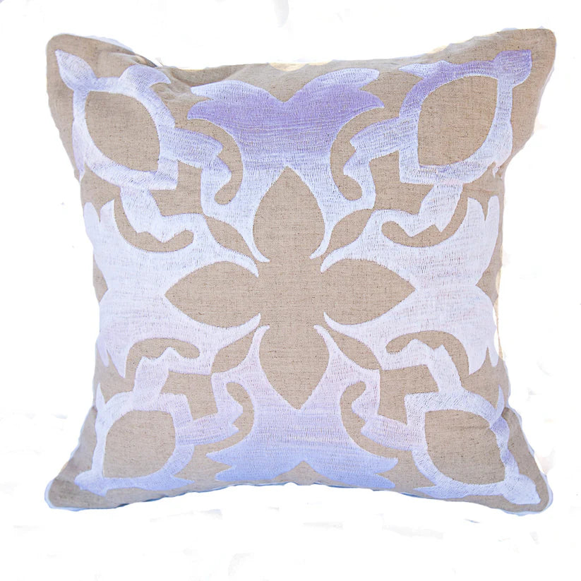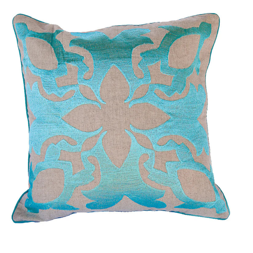 Maka Sea’s Lanikai collection is an homage to the traditional Hawaiian quilt pattern. Quality embroidery on the signature 100% natural linen brings calm and serenity to any island (or landlocked) space.
