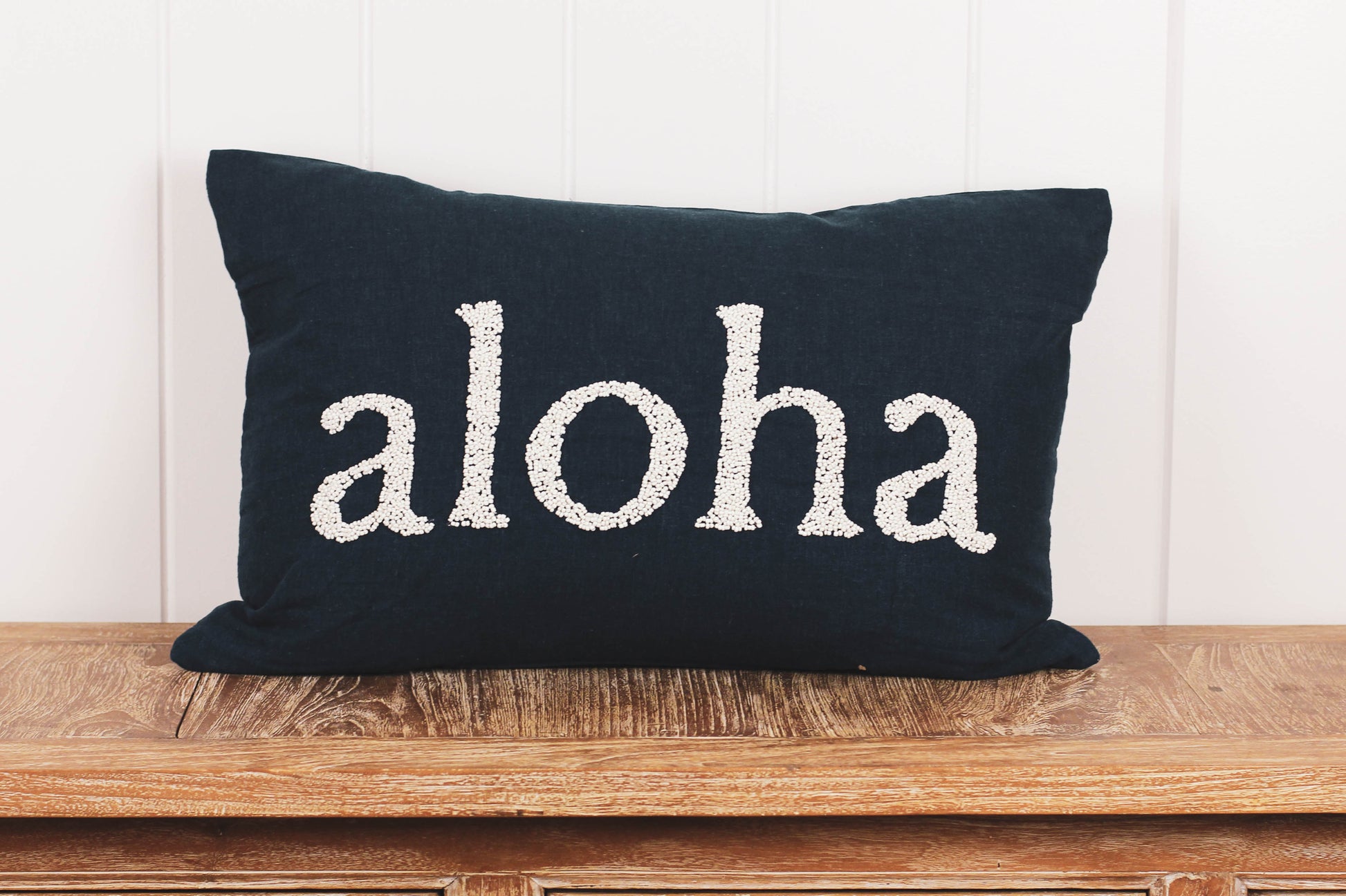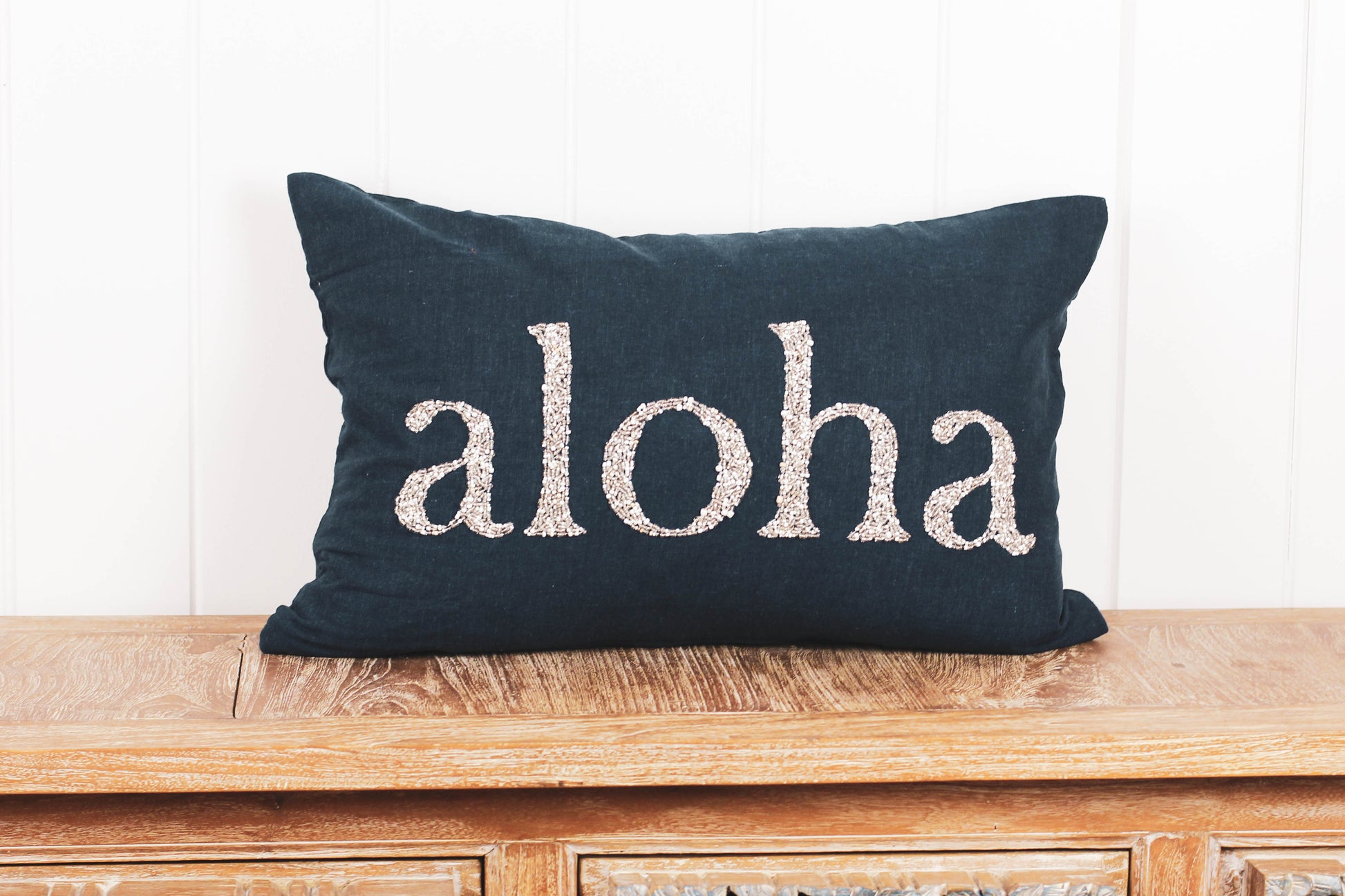 - 100% natural linen with tiny pearlized shell beads forming the word "aloha"