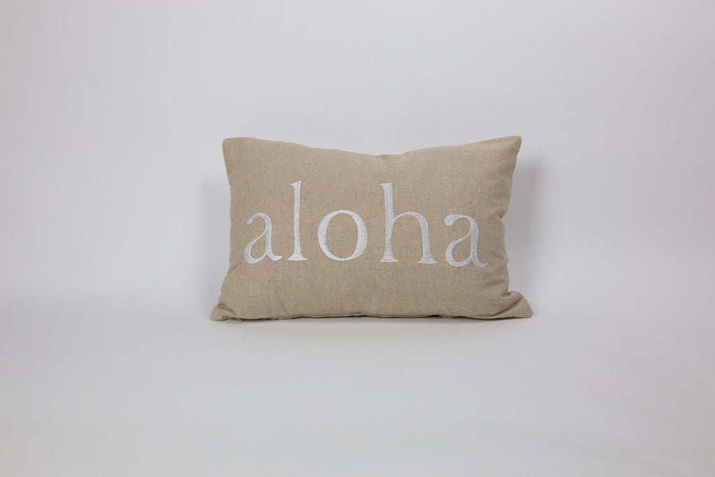 Home may be where your heart is, but your thoughts will always be drifting back to the islands. Add surf shack chic to your home with a Maka Sea two-sided embroidered linen pillow.