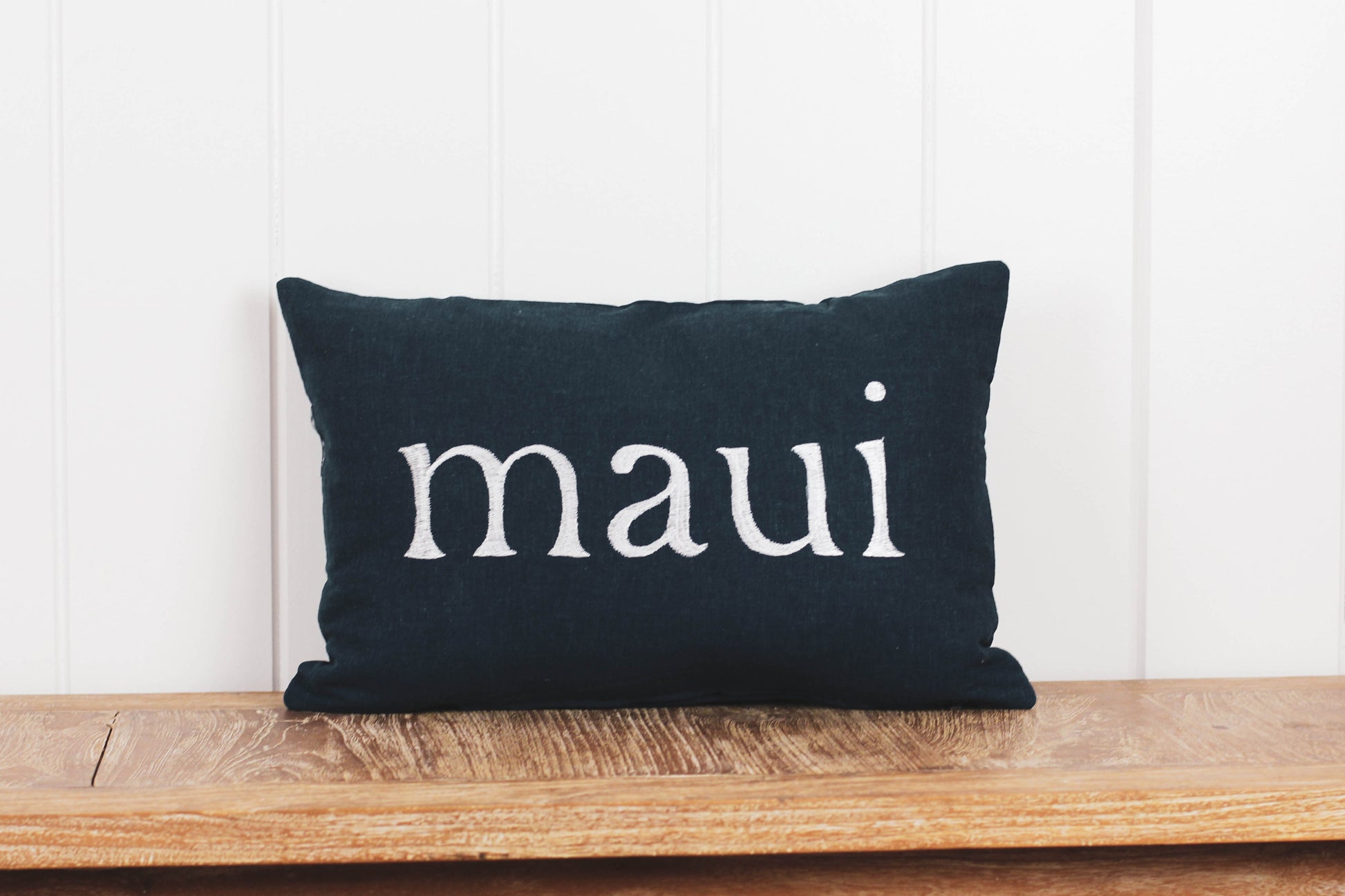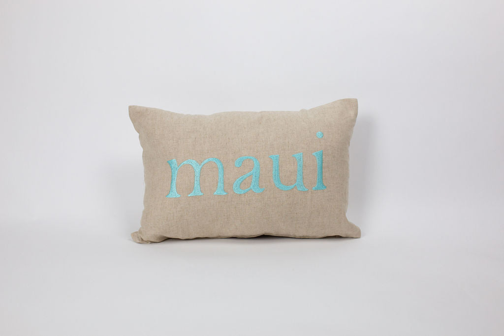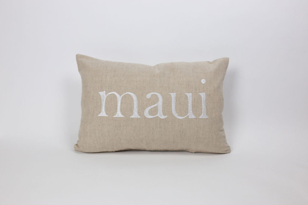 Home may be where your heart is, but your thoughts will always be drifting back to Maui. Add surf shack chic to your home with a Maka Sea two-sided embroidered linen pillow.