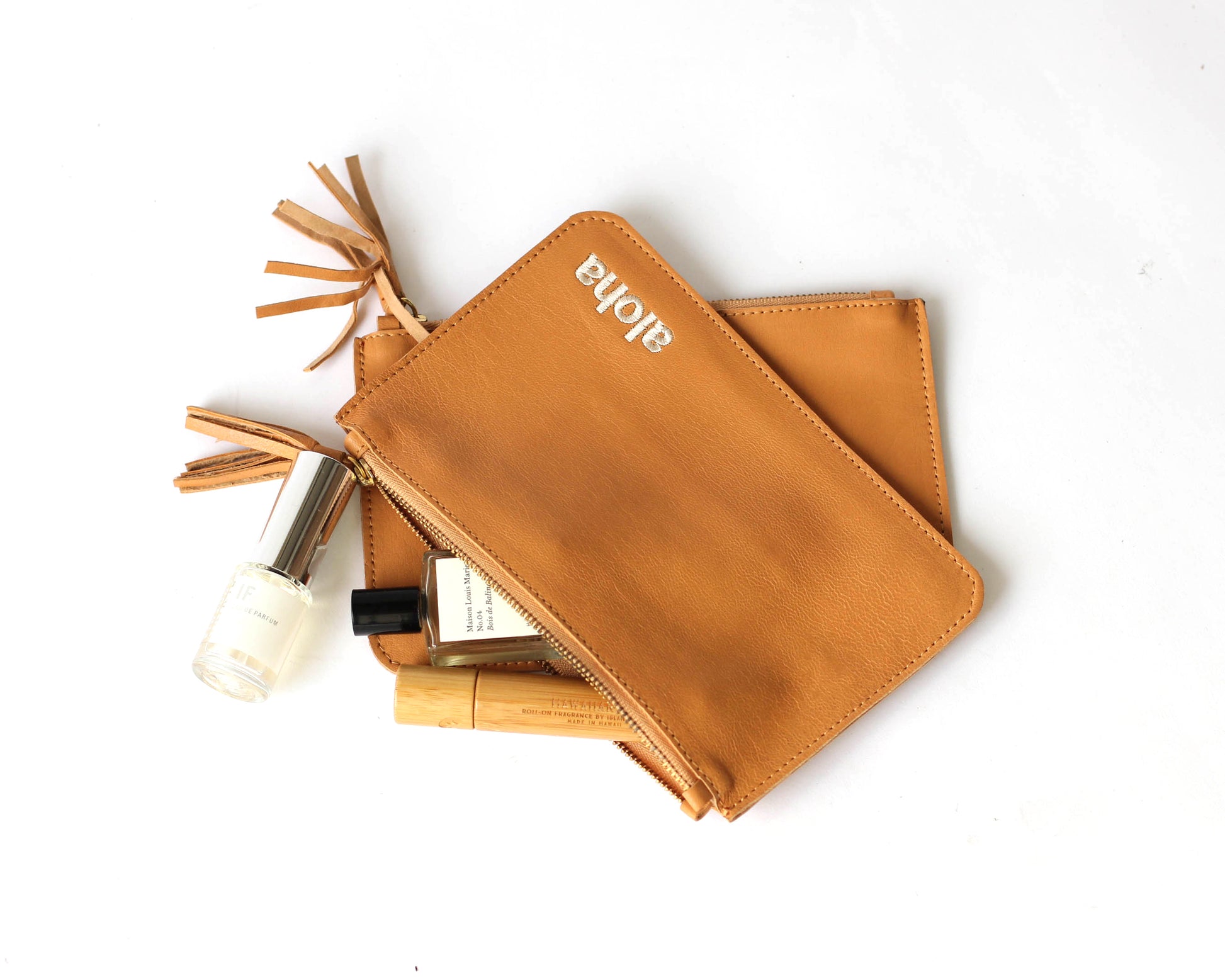 Mimi is Bu Tiki’s zipper pouch in rich leather but in a smaller size. It’s a perfect pick for day trips, traveling and can even sub in for a clutch!