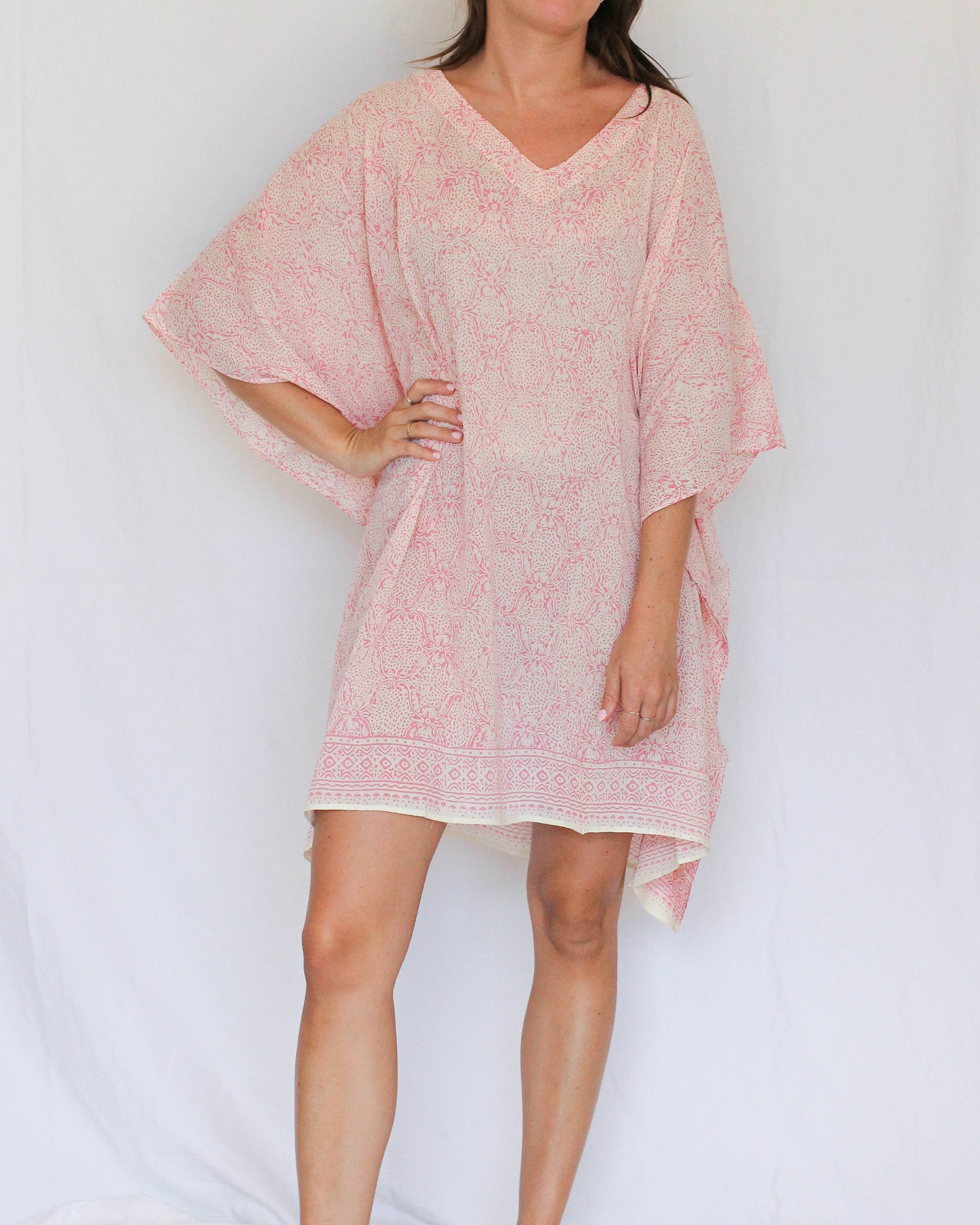 Embrace the loose fit of the bu tiki’s voile chiffon kaftan for a comfortable and effortless style. By playing with accessories, footwear, and additional layers, you can easily transition your linen short kaftan dress from a chic beachwear piece to a versatile outfit suitable for various casual or semi-formal settings.