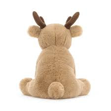 Romi Reindeer brings sleigh-loads of festive joy. This scrumptious honey deer has huge weighted paws and suedette antlers in rich cocoa tones – not to mention their delicate tufty tail, cranberry nose and waggle ears. A Christmas companion for long drives and post-dinner naps.