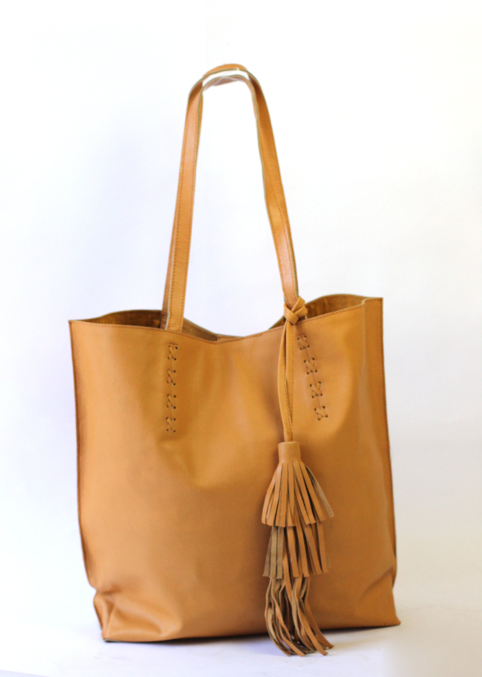 The tote to end all totes. Beautiful leather craftsmanship, stylish details in the fringe tassel and "x" leather stitching!